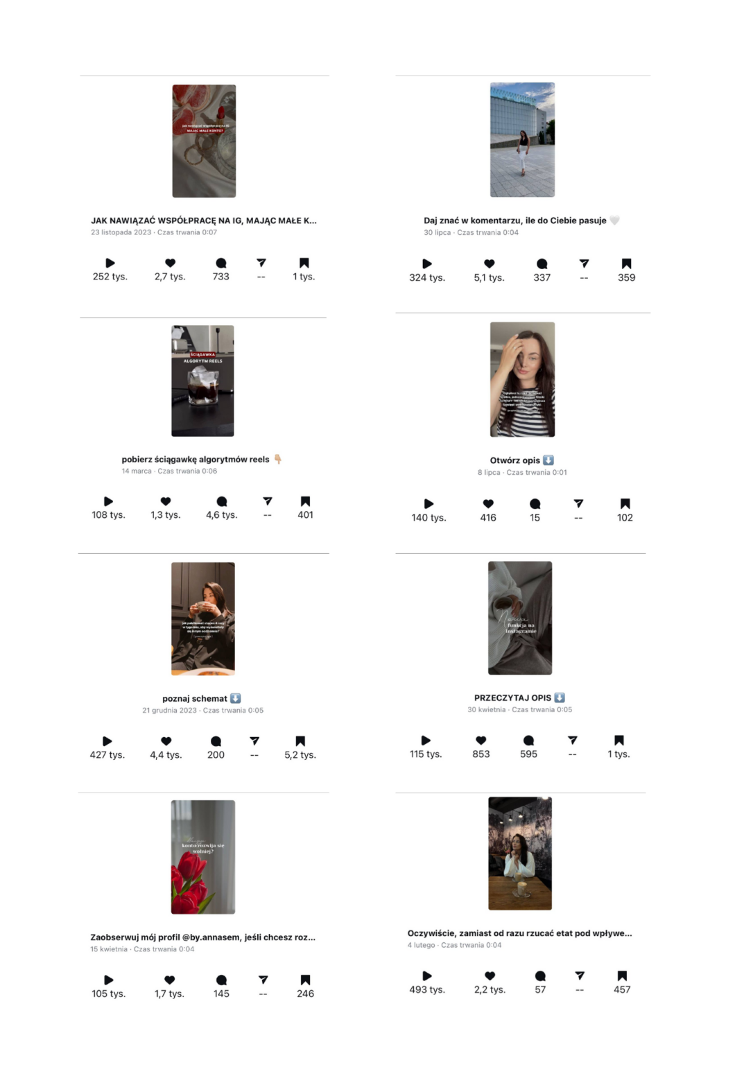 Moje rolki wielokrotnie osiągały extra wyniki – niektóre z nich miały po 200 – 500 tys., a nawet 2 miliony wyświetleń.
